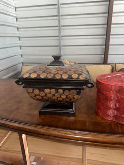Rustic Wood Slice Ceramic Lidded Bowl – Black & Natural$20Oak Point, TX