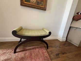 Elegant Curved Wood Bench with Green Upholstered Seat$85Oak Point, TX
