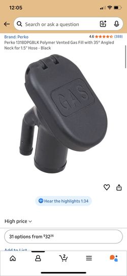 Perko 1318DPGBLK Polymer Vented Gas Fill with 35° Angled Neck for 1.5" Hose - Black$35Mesa, AZ
