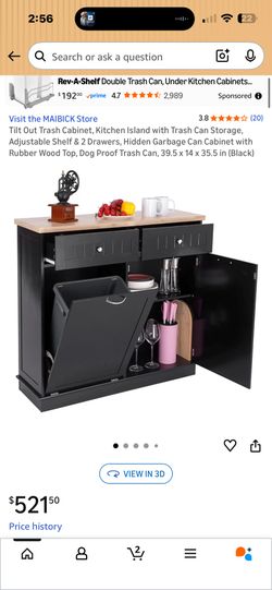 New island or cabinet with tilt-out trashcan built-in outlets on top and wooden countertop$60Huntington Beach, CA