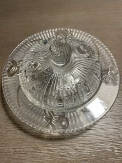 Vintage Jeanette Iris and Herringbone Clear Glass Round Butter Dish with L$50Modesto, CA