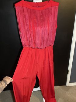 Vintage Carteret New York Red Fringe Jumpsuit Disco Cocktail USA Sz 10 Pockets$169Modesto, CA