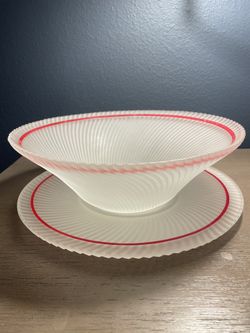 Vintage Federal Glass Diana Swirl Satin White Console Bowl Plate Set Ribbed$40Modesto, CA