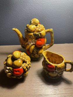 Vintage ARDCO Harvest Raised Fruit Teapot Sugar Bowl & Creamer Set Japan$115Modesto, CA