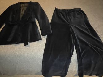 Black Velvet Pantsuit Set Belted Blazer + Wide Leg Pants US XS/S Needs Repair$50Modesto, CA