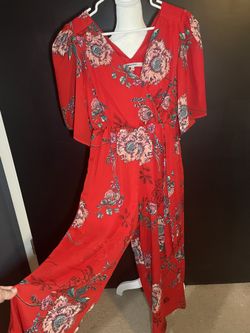 Bailey Blue Red Floral Faux Wrap Jumpsuit Women’s S Wide Leg Tie Waist Lined$30Modesto, CA