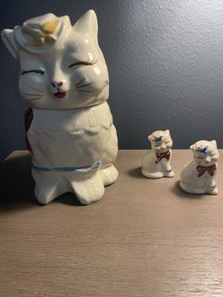 Cat Cookie Jar with Salt & Pepper Shakerd, vintage Pattented Puss N Boots$120Modesto, CA