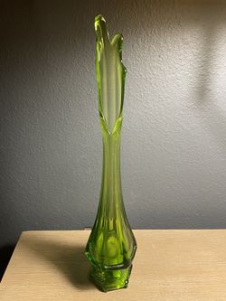 Viking Art Glass Green Swung Vase 16” MCM Stretch Glass Pedestal “Hand Made”$120Modesto, CA