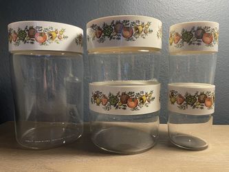 Vintage Pyrex Glass Canister Set Spice of Life 5 Pc USA W Lids Shaker$65Modesto, CA