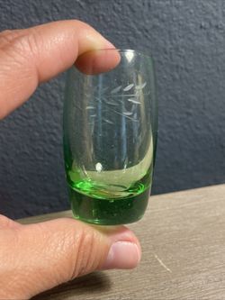 Green Etched Shot Glass Heavy Base Wheat Pattern Cordial Barware 2oz$10Modesto, CA