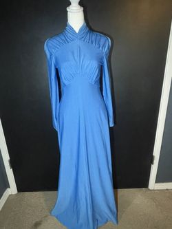 Vintage 70s Style Blue Maxi Dress Mock Neck Long Sleeve Stretch XSLeft Seam Flaw$70Modesto, CA