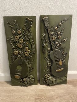 Vintage Progressive Art Products 1982 3D Wall Plaques Pair Mandolin Cello 23.5in$100Modesto, CA