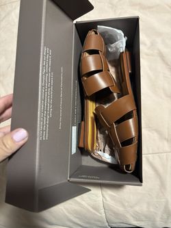 Franco Sarto Taviana Slide Sandals Brown Leather Size 7M Acorn Woven $98 Retail$50Los Angeles, CA
