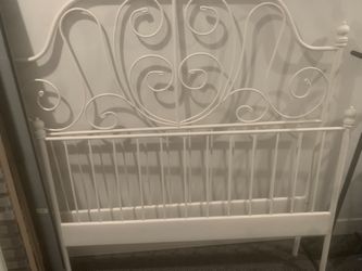 White Iron Bed Frame Foot Board Head Board Side Slats Center Metal Secure Bar And Slats Only Mattress Is Needed$99Chicago, IL
