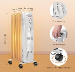 Aigostar 1500W Oil Heater 7-Fin Safe Heat, 3 Heat Setting Space Heater Adjustable Thermostat, Overheat & Tip-Over Protection, Heat Up 250 Square Feet$40Elk Grove, CA