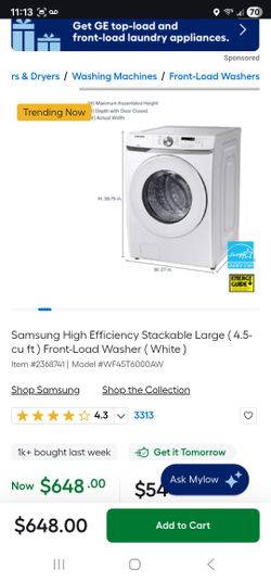 Samsung High Efficiency Stackable Large ( 4.5-cu ft ) Front-Load Washer ( White )$550Los Angeles, CA