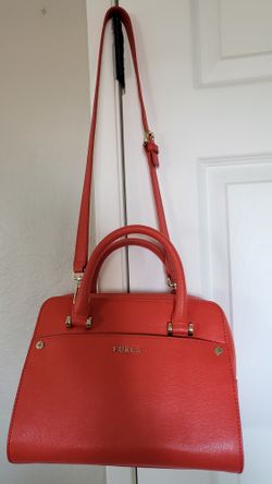 FURLA Coral Orange Saffiano Genuine Leather Purse Satchel HandBag