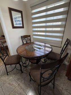 Elegant Round Dining Table with 4 Chairs – Wood & Metal, Glass Center Detail$375Los Angeles, CA