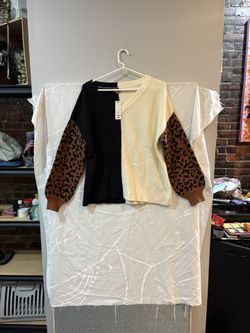 Francesca's Collections Black and Cream V-Neck Sweater with Leopard Sleeves$18Gloucester, MA