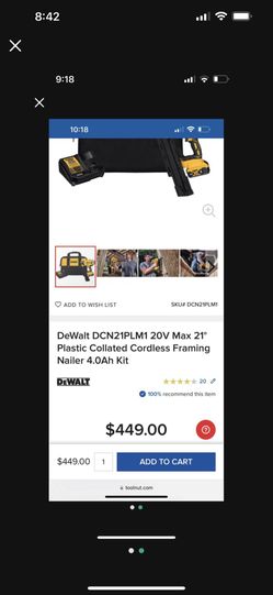 DEWALT 20V MAX* 21 degree PLASTIC COLLATED CORDLESS FRAMING NAILER KIT$280Chandler, AZ