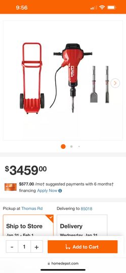 Hilti 15 Amp 120V Hex 28 Corded 32.3 in x 23.1 in. x 8.6 in. TE-3000 AVR Electric Jack Hammer with Trolley, Cord and $1,600Chandler, AZ