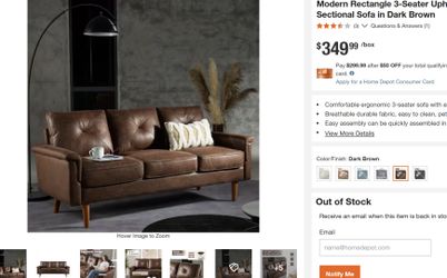 72 in. Straight Arm Polyester Fabrics Modern Rectangle 3-Seater Upholstered Sectional Sofa in Dark Brown$150Corona, CA