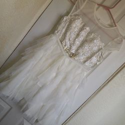 Jona Michelle Girls Ivory Floral Appliqué Metallic Accent Ruffle Dress Size 12 - Ivory Color Style C05409$15Cty Of Cmmrce, CA