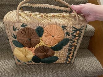 Vintage Straw Beach Bag With Floral Design 1960's$40Warwick, RI