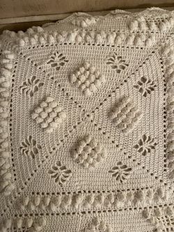 Afghan Knit Crochet Blanket Handmade P'corn Stitch Pattern Ecru 62 Wide 78 1/2$70Warwick, RI