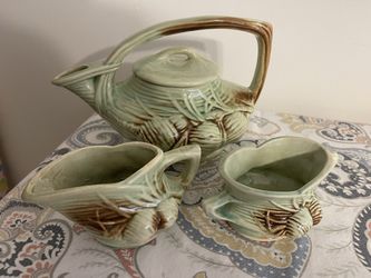 McCoy Pottery Green Brown Pine Cone Tea Set; Tea Pot Creamer & Sugar $20Warwick, RI