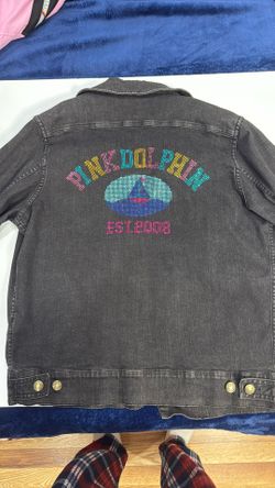 😱Pink Dolphin Vintage Denim Trucker Jacket Unisex M Blue Rhinestone🙈$130Los Angeles, CA