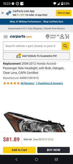 Honda 2008-2012 Honda Accord Passenger Side Headlight with Bulb Halogen Clear Lens CAPA Certified$47Lawrenceville, GA