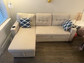 White/Beige Pull-Out convertible Sleeper 83’’ Couch with Storage Chaise (Excellent Condition)$300Spring, TX