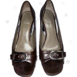 Chic Dark Brown Peep-Toe Heels Elegant Buckle Detail Office Siren 2000s Y2K 90s$35Santa Clara, CA
