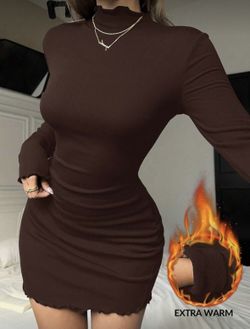 SHEIN EZwear Autumn/Winter New Knitted High Elasticity Thermal Lining Slim Fit Women Dress Women Long Sleeve Dress brown Sexy Dress Curve$15Las Vegas, NV