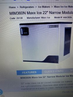 MIM360N Maxx Ice 22” Narrow Modulation Ice Maker$1,300Orlando, FL