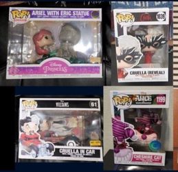 Funko Disney Ariel, Cruella, Cheshire Cat.$80Winchester, CA