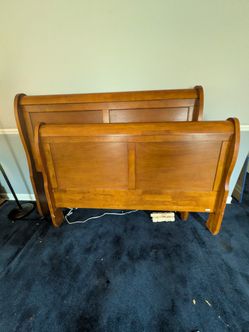 Queen Size Bed Frame. Vintage Solid Heavy Wood. Sleigh Bed. Side Board/Rails Also Included .$200Trout Valley, IL