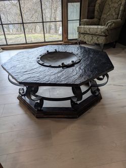 Hibachi Table. Octagonal. Vintage MCM. Solid Slate Top & Wrought Iron Base. $700Trout Valley, IL
