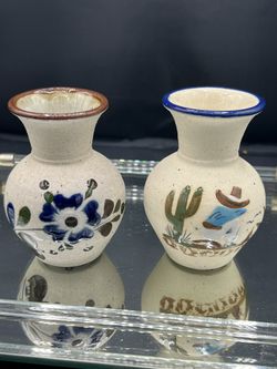 Vintage Small set of 2 Mexican Tonala Folk Art Sandstone Pottery Vases/Artist si$30Booneville, MS