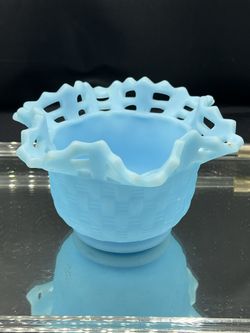 Vintage Fenton Blue Satin Glass Basket Weave Lace Bowl$38Booneville, MS