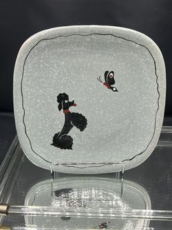 Vintage Glidden Poodle Plate Small Black Dog Pottery Dessert Size Display 1950s $25Booneville, MS