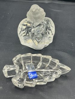 Vintage 2 pcs 1 Fenton Hand Cut 24% Lead Crystal Angel & 1 Leaf Dish Made in Yug$30Booneville, MS