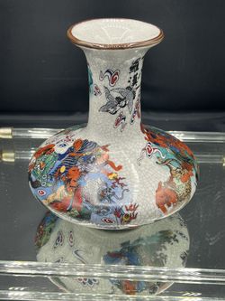Contemporary reproduction Japanese Crackle Glaze Satsuma Style Vase Birds & Figu$50Booneville, MS