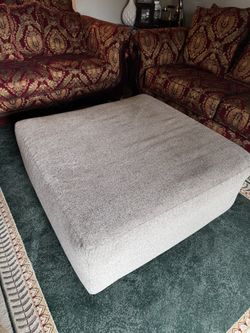 Clean square ottoman. Light grey fabric. Great for kicking up feet or extra seating. Dimensions 40.8"D x 47.6"W x 15.5"H new condition.serious buyer o$90Columbia, SC