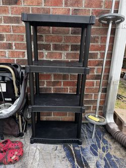 Sturdy 4-tier black plastic shelving unit. Great for garage, basement, or any storage needs. Easy to put together.$45Columbia, SC