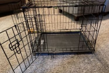 Sturdy black wire dog crate. Has removable plastic tray. Good for small to medium pets. Around 24 inches tall, 18 inches wide.$45Columbia, SC