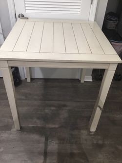 The counter table measures 36"W x 36"L x 36"H, Versatile weathered ivory table. Has a cool slatted top design. Great for a dining nook, kitchen island$50Columbia, SC