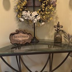 Glass table with wrought iron & stone base$160Bakersfield, CA