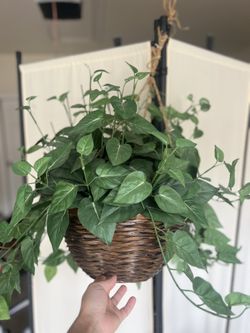 An artificial philodendron plant in a hanging basket.$20Katy, TX